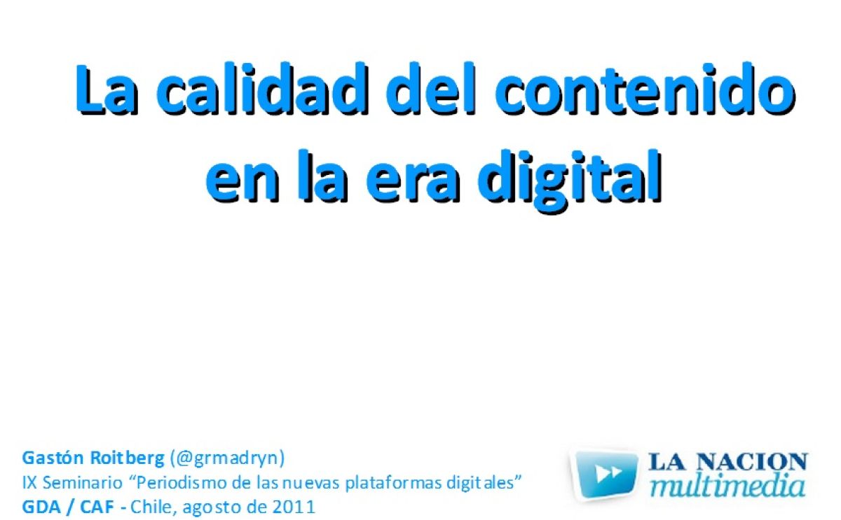 He logrado recuperar «La calidad del contenido en la era Digital» , ponencia de Gastón Roitberg Managing Editor de La Nación Multimedia, prácticamente mientras dicta su charla.