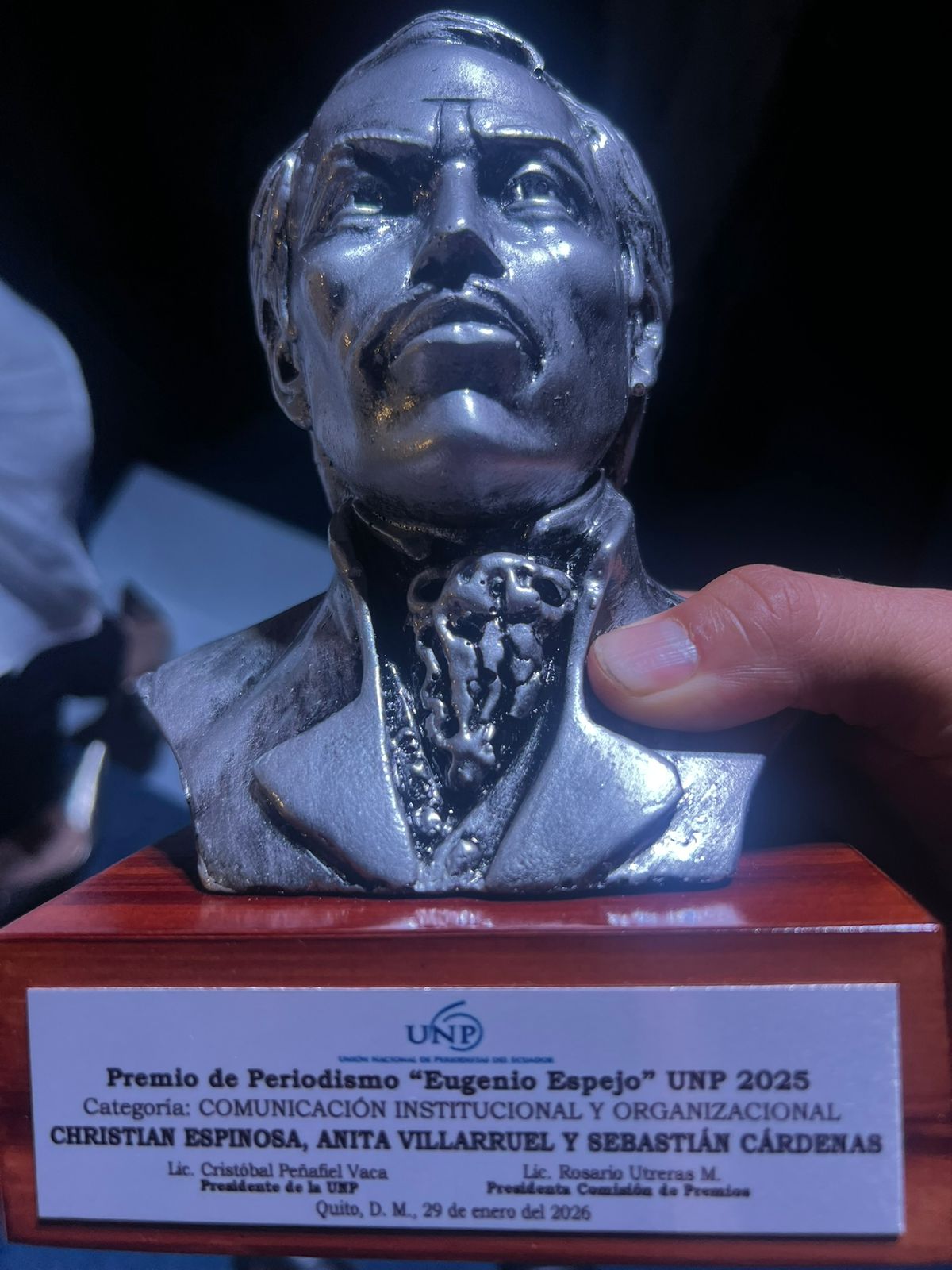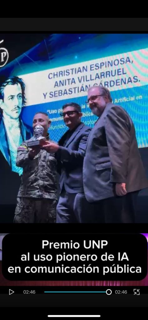 El trabajo de innovación en IA que hicimos a nivel de comunicación en el Instituto de Seguridad Social de las Fuerzas Armadas del Ecuador, Issfa, tiene su reconocimiento: el premio nacional Eugenio Espejo otorgado por la Unión Nacional de Periodistas del Ecuador (UNP) en la categoría de comunicación institucional «al uso pionero de inteligencia artificial» a nivel público.